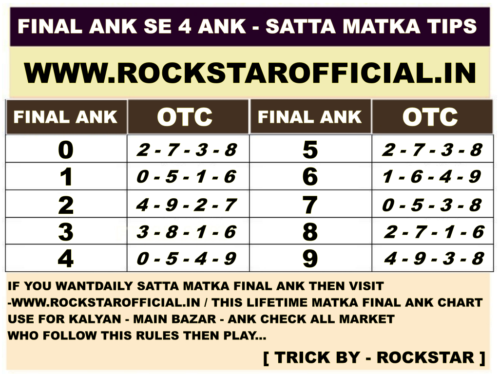 FINAL ANK TRICK >> दोस्तों ये ट्रिक फाइनल अंक से बनती है जब भी आपको पता चले आपको यहाँ फाइनल अंक के आगे जो अंक दिए है वो अंक ओपन तो क्लोस में आने वाले अंक है